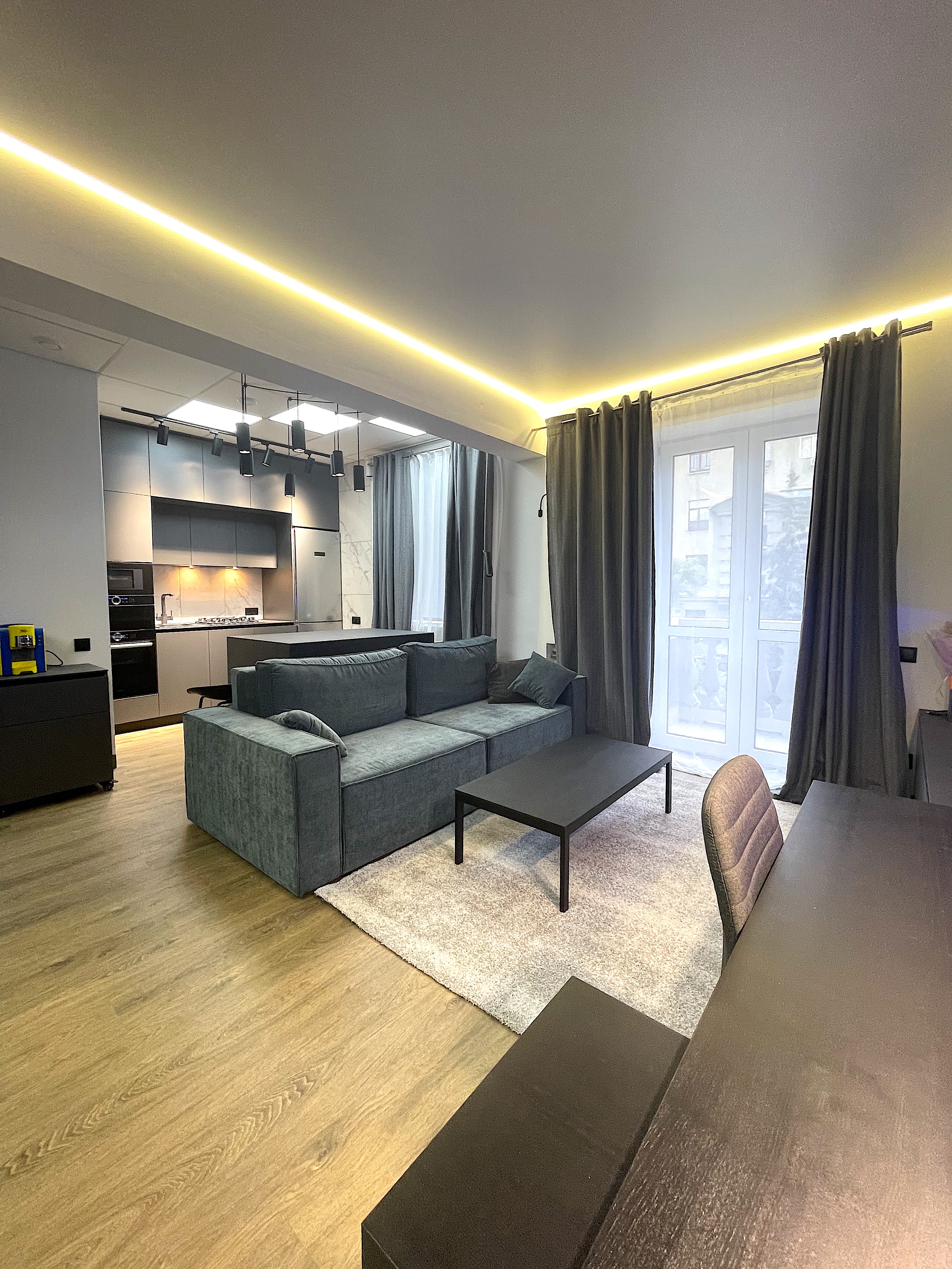 Загальна площа квартири складає 55м², і вона пропонує вам ідеальне поєднання: простору кухні-вітальні, величезної спальні, санітарного вузла та розкішного балкону з неймовірним, захоплюючим видом на бутікову зону міста.
