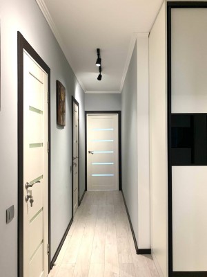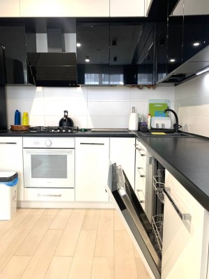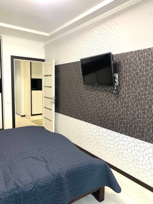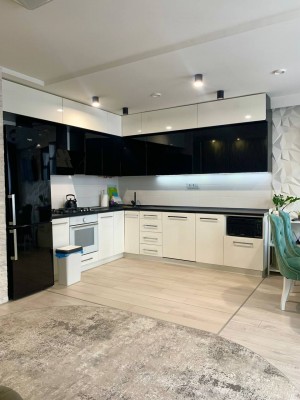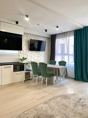 Продаж 2-кімнатної (БЕЗ КОМІСІЇ ДЛЯ ПОКУПЦЯ) квартири на вул. Городницькій ЖК "PARUS LIFE" Площа: 85/36/27м2. Поверх: 3/8. Простора квартира для сім'ї з авторським ремонтом. Спальня, дитяча, велика кухня-студія, санвузол, комора. Кухня зі зручною широкою робочою поверхнею, електричною духовкою, газовою плитою та посудомийкою. Також є вмісткий холодильник, та окрема прихована морозильна камера адаптована в інтер'єр. Гарні дизайнерські замшеві стільці в тон зі шторами black out. В зоні відпочинку також є комфортний стильний диван та телевізор. На кухні є підігрів підлоги. Спальня зі зручним двоспальним ліжком з ортопедичним матрацом, приліжкові тумби, телевізор, дві вмісткі шафи купе та робочий стіл з дизайнерським кріслом. Дитяча кімната з двома ліжками, добре освітленим комфортним робочим місцем, шафою, стелажем та місцем під телевізор. Санвузол суміжний з ванною, також є біде та шафа для зберігання хімії та побутових речей. Комора з пралкою та стелажами. Підгігрів підлоги в санвузлі та в коморі. В передпокої вмістка велика шафа купе, стелаж для взуття, дзеркало в повний зріст та підігрів підлоги. Сигналізація підключена на пульт ДСО. Безперебійний блок живлення на котел, інтернет і сигналізацію. Тепла та затишна квартира з виглядом на високий замок. Вартість: 180 000$. Додатково можна купити паркомісце.