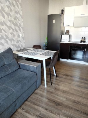 Прекрасная 1-комнатная квартира в новом жилом комплексе ЖК Радужный с капитальным ремонтом и стильной мебелью ждет своего нового владельца! Площадь квартиры идеально подходит для одного или двух человек, обеспечивая комфортное пространство для жизни и отдыха. Планировка кухня- студия 16 м и уютная спальня. Этаж 9 из 9, есть технический с возможностью пристройки второго уровня квартиры. У нас отличный панорамный вид во двор с благоустроенной детской площадкой и парковкой для авто Преимущества нашего жилья: Качественный капитальный ремонт, выполненный с использованием современных материалов. Входная дверь бронированная, межкомнатные с алюминиевым торцом. Ванная комната с теплым полом, который обеспечит ощущение комфорта в холодные дни. Надёжная электропроводка с разумной системой автоматов и проходными выключателями. Балкон не застеклён, что позволит наслаждаться свежим воздухом круглый год. Мы даём вам уникальную возможность воплотить свои дизайнерские фантазии для создания идеального интерьера. Вы сможете придать этому уголку своего стиля с нуля, включая установку современного натяжного потолка Вся необходимая бытовая техника уже установлена, позволяя вам начать комфортную жизнь сразу после покупки. Отличное расположение в развивающемся районе, с удобной транспортной доступностью и развитой инфраструктурой: Новые дома, близость метро Турбоатом 10 минут пешком. Цена всего экв. 34500 у.е - это отличная инвестиция в ваше комфортное будущее! Не упустите шанс стать обладателем этой уютной квартиры. Звоните прямо сейчас, чтобы узнать больше и договориться о просмотре.