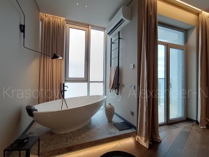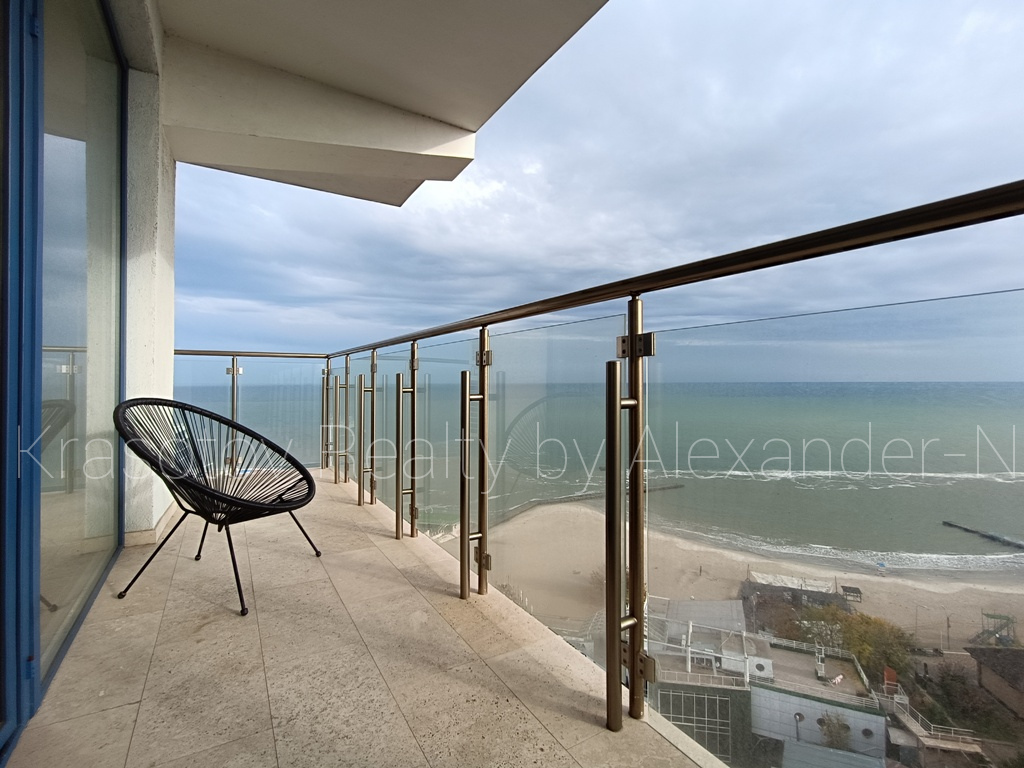 Ванный переулок / пляж на 10-й станции Большого Фонтана, сдам фешенебельную квартиру, расположенную на 10 этаже в новом 12-ти этажном доме премиум-класса ЖК «Миконос» (от строительной компания «Гефест»), общая площадь 88 кв.м, изысканная гостиная с гранитным камином на биотопливе, потрясающая спальня с отдельно стоящей панорамной ванной, два сан. узла, открытая кухня со столовой зоной у окна, два балкона-террасы с шикарным прямым видом на море, эксклюзивный авторский дизайн интерьера в стиле лофт, непревзойденное сочетание игры света, стекла и металла, квартира наполнена невероятным количеством деталей и технических новшеств, создающих комфорт премиального европейского уровня и спроектирована таким образом, что со всех точек и помещений, где бы вы не находились открывается вид на море, полностью укомплектована высококачественной итальянской мебелью и бытовой техникой BOCH, австрийский паркет, встроенные конвекторы в полу, мраморные столешницы, сантехника Victoria & Albert, Villeroy & Bosh и Treme, автоматические шторы с дистанционным управлением, профессиональное освещение Delta и Flos, все абсолютно новое и в идеальном состоянии, в доме ухоженная и охраняемая придомовая территория с выходом в уютный сквер, все автономные коммуникации, есть место для машины в подземном паркинге, уникальная квартира лакшери класса с прямым панорамным видом на море в новом доме на берегу моря в шикарном и красивом современном районе возле пляжа на 10-й станции Большого Фонтана!