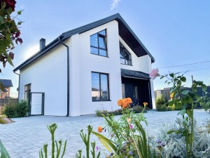 Будувався будинок з якісних матеріалів, Застосовані технології енергозбереження, утеплення стін 120 мм, вікна REHAU євро70 з посиленим профілем, утеплений цоколь, утеплена покрівля 200 мм. Панорамні вікна та висока стеля 3,2м створюють відчуття комфорту та свободи. Зручні бетонні сходи, перекриття монолітне, залізобетонне 180 мм. Якісні вхідні двері виробництва RODOS.