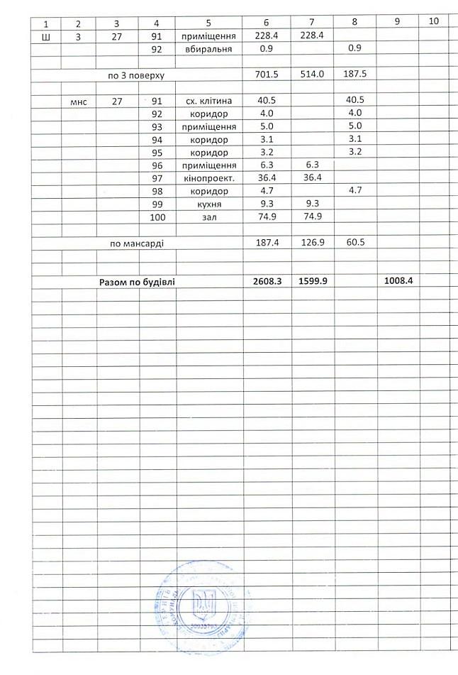 Загальна площа: 2608 кв.м