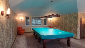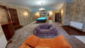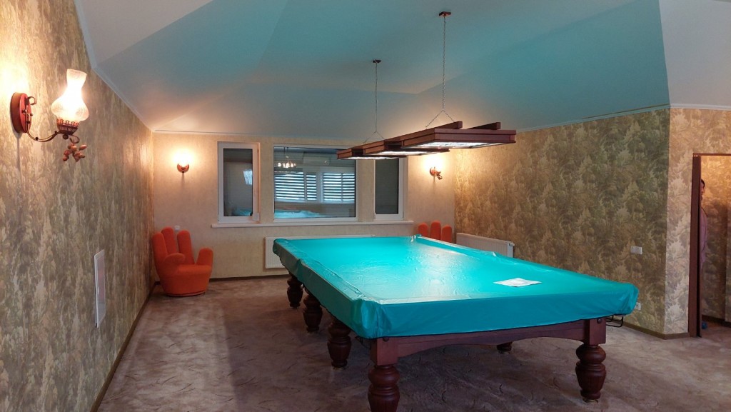На другому поверсі - 2 спальні, санвузол, велика кімната для відпочинку 72м2 з більярдним столом. Окремі сходи в альтанку і вхід в гараж.