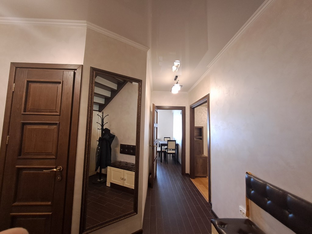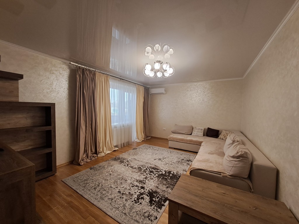 У квартирі зроблено сучасний та якісний ремонт з продуманими технічними деталями: якісна проводка, тепла підлога, добротні металопластикові вікна, встановлено два кондиціонери. Квартира повністю облаштована меблями, на кухні встановлено гарнітур з дерева, кімнати виконані в одному стилі. При продажі залишаються всі меблі та побутова техніка.