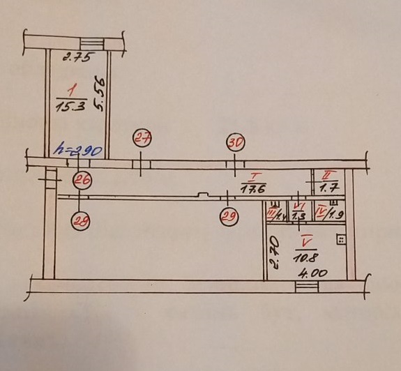 3 кімн., площа 62/40/8, поверх 9/9