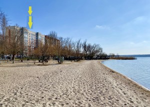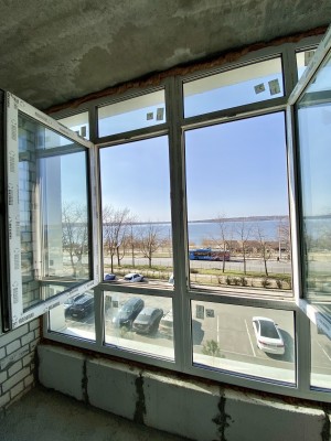 Квартира на 3/10 поверсі, загальною площею 95 метрів: велика вітальня 36 м з лоджією, кухня 10 м з балконом, великий санвузол, дві спальні з лоджією та з видом на річку.