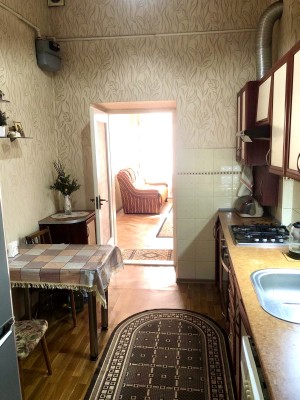 двері: вхідні - броньовані, Санвузол роздільний, обкладений плиткою, уся сантехніка робоча.В одній кімнаті пічне опалення, в другій - газовий конвектор, газова колонка Балкон спільний на поверсі, є підвал 10 м.Залишаються всі меблі.Подвіря не колодязь, є де бавитись діткам.