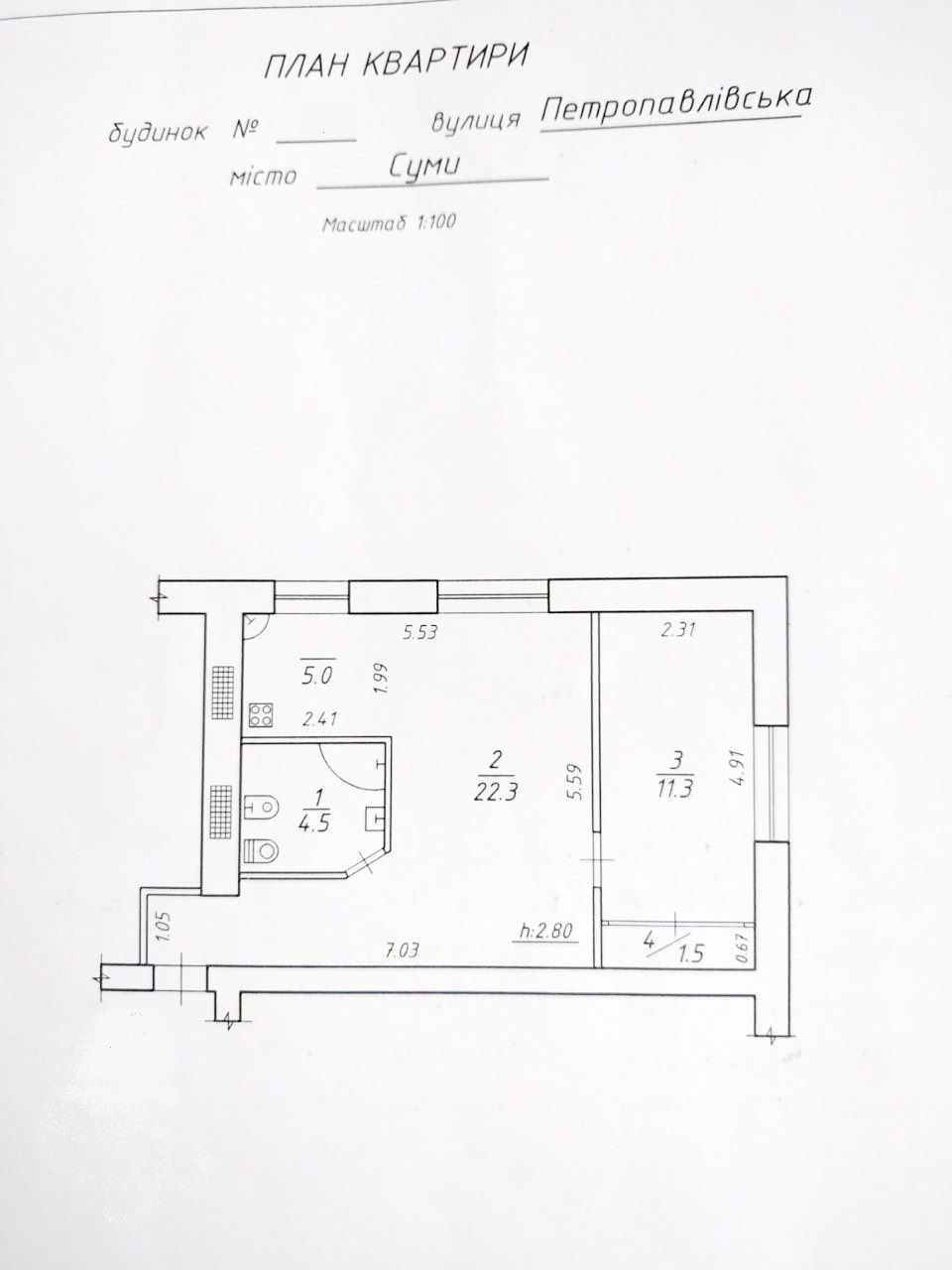Кухня студія, єдиний санвузол.
