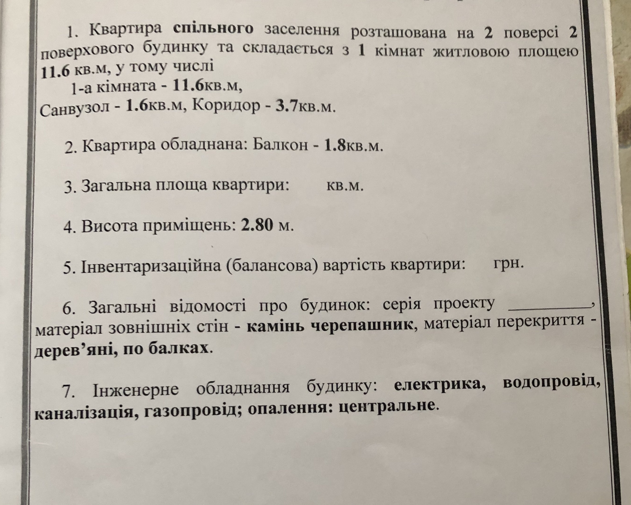 Жила площа: 11.6 кв.м