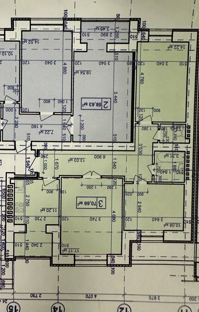 2 кімн., площа 57/-/14, поверх 3/8